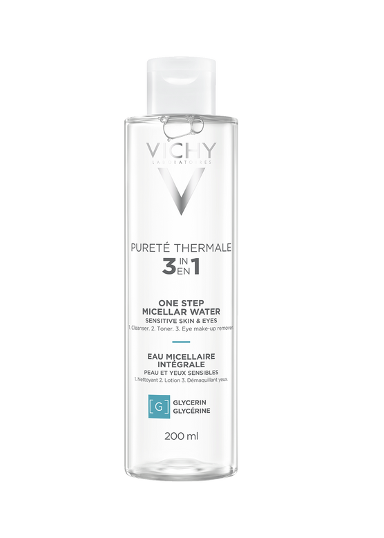 Tehokkaasti puhdistava misellivesi, joka sisältää Vichy vulkaanista vettä.