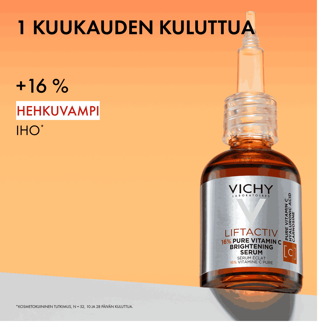 Antioksidanttinen anti-age-seerumi, joka sisältää 16 % C-vitamiinia.