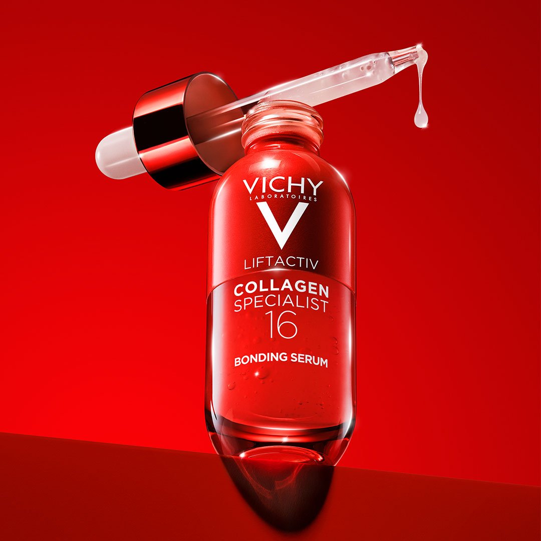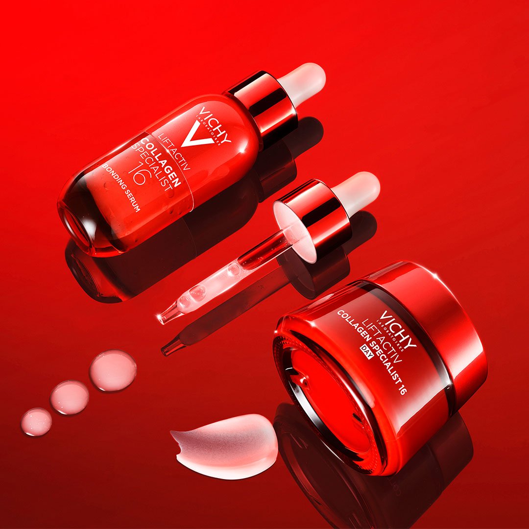 Keskittyy ihon: kosteutukseen, juonteisiin, ryppyihin, kiinteyteen, täyteläisyyteen, ihon kuntoon, joustavuuteen, kimmoisuuteen, velttouteen, ihon vahvuuteen, tiheyteen, ihon tasaisuuteen, rakenteeseen, sileyteen, hehkuun ja pehmeyteen. Kaikille ihotyypeille. Vichy Collagen Specialist 16 ei keskity vain yhteen tai kahteen ikääntymisen merkkiin; se ottaa kokonaisvaltaisen lähestymistavan keskittyen 16 merkkiin, mikä varmistaa näkyvästi sileämmän, täyteläisemmän ja säteilevämmän ihon. Tämä tehokas seerumi vahvistaa ihosi kollageenimatriisia, joka on nuorekkaan näköisen ihon perusta.